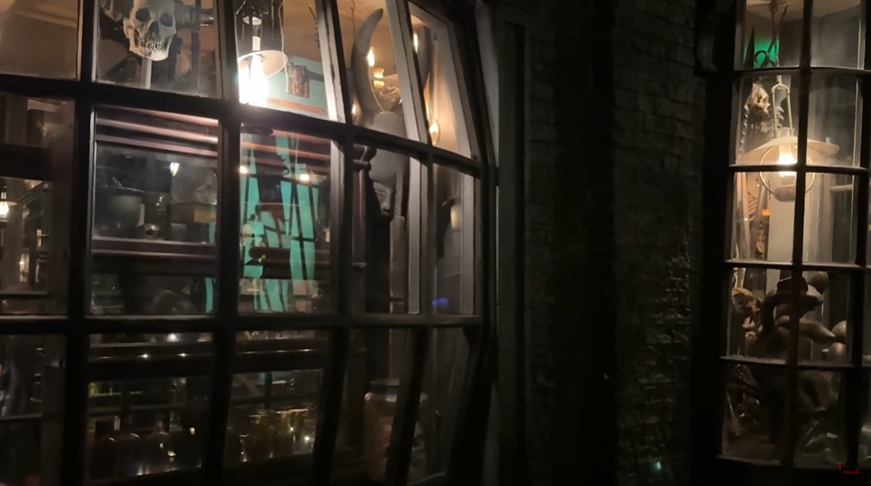 Agora, se você quer se sentir um verdadeiro bruxo das trevas, você precisa achar a Travessa do Tranco (Knockturn Alley). É um beco super escondido, escuro e, o melhor de tudo: climatizado! No verão de 40 graus de Orlando, esse lugar é o paraíso porque o ar condicionado é fortíssimo ali dentro.