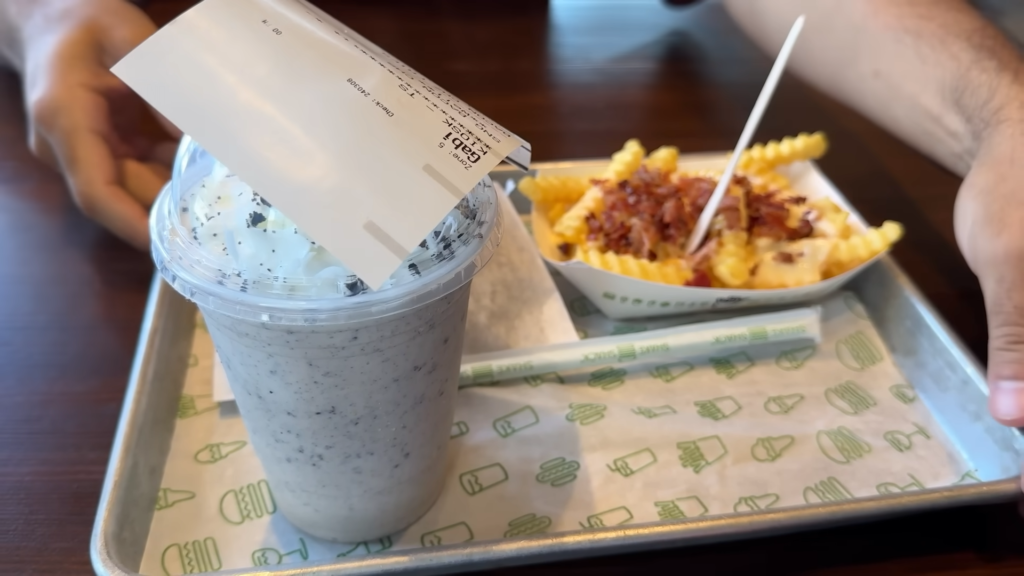 E falando em se empolgar… nós experimentamos o milkshake de Oreo Funnel Cake do Shake Shack. A apresentação é linda, o copo é super resistente, mas a verdade precisa ser dita: achamos muito pesado. O sabor do Oreo é maravilhoso, mas a textura estava quase oleosa de tão espessa, parecia que estávamos tomando puro recheio da bolacha. É gostoso? É. Mas na próxima, eu definitivamente voltaria para o sabor tradicional de baunilha ou chocolate, que são absurdamente perfeitos.