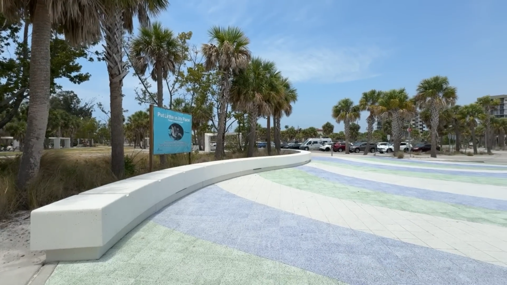 Esqueça aquela ideia de praia selvagem onde você tem que sofrer para achar um banheiro. A estrutura de Siesta Beach é de outro planeta. Tem acessibilidade para cadeirantes com caminhos pavimentados e até aquele “tapetão” azul na areia que ajuda a levar carrinhos de bebê e cadeiras sem esforço.
