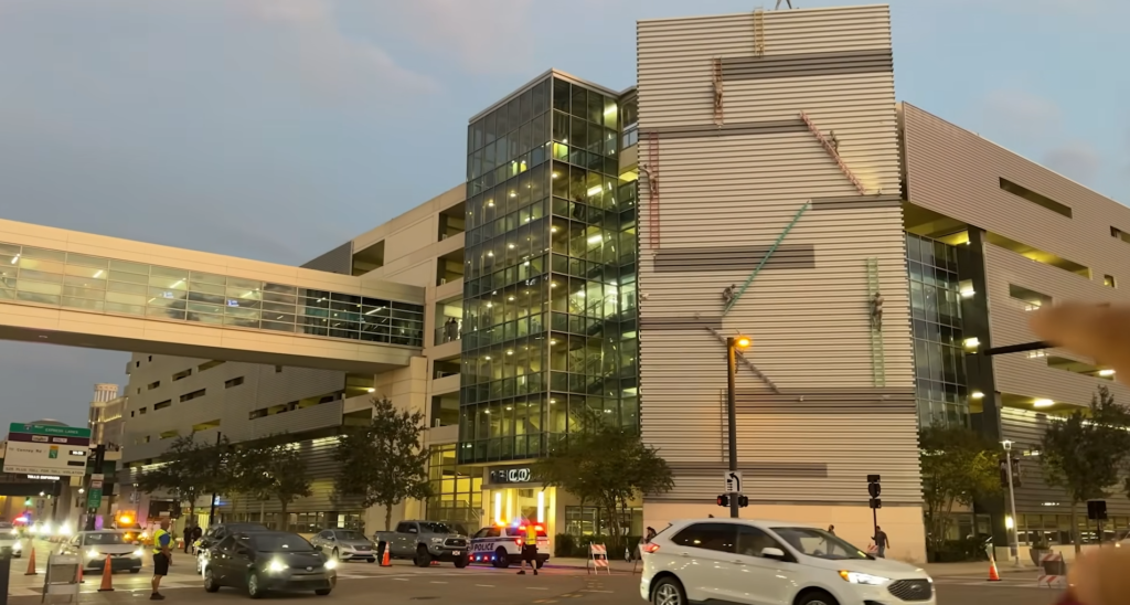 Existe o estacionamento oficial, o Geico Garage, que é conectado à arena por uma passarela. É o mais cômodo, você já sai direto dentro do estádio, mas também é o mais caro (e costuma lotar rápido). O que eu e o Gustavo costumamos fazer é estacionar nos terrenos ao redor. Existem vários estacionamentos “ambulantes” nas ruas paralelas onde você paga entre 20 e 40 dólares. Atenção: Esses estacionamentos de rua muitas vezes só aceitam dinheiro (cash), o que é uma das raras exceções aqui em Orlando, onde tudo é no cartão.