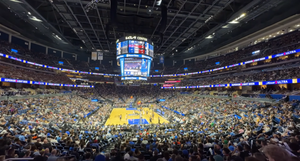 Os preços variam demais. Você consegue ingressos por 25 ou 30 dólares nos setores mais altos (chamados de “Terrace Level”), ou pode gastar centenas de dólares para ficar colado na quadra. A verdade é que, no Kia Center, não existe lugar ruim. Mesmo lá de cima, a visão é privilegiada e o telão central é gigantesco, garantindo que você veja cada detalhe da suada dos jogadores.
