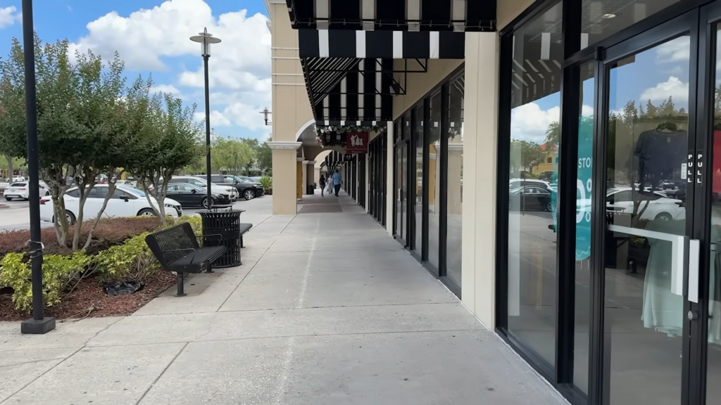 Além disso, a localização é um verdadeiro combo de economia e praticidade. De um lado da rua, você tem o próprio outlet com Calvin Klein, Nike e Carter’s. Se você simplesmente atravessar a rua (dá para ir andando, o que é raríssimo em Orlando!), você cai de cara em um Walmart gigantesco. E se virar a esquina, tem Ross, TJ Maxx e Five Below. Ou seja, você resolve todas as suas compras e ainda faz uma pausa para um almoço maravilhoso no meio do caminho.