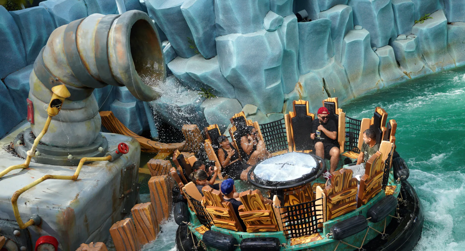 O bote acomoda até 12 pessoas e você vai girando por um rio cheio de obstáculos, cachoeiras e, claro, o Bluto tentando atrapalhar o Popeye. O que torna essa atração única é que não tem como escapar. Em algum momento, a correnteza vai te levar direto para debaixo de uma queda d’água monumental. É risada garantida do início ao fim, principalmente quando você vê aquele seu amigo que jurou que não ia se molhar ficando completamente ensopado.