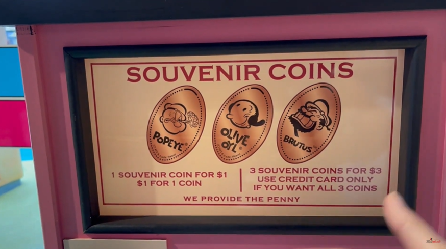 Claro que não podia faltar aquele momento de gastar uns dólares, né? A Toon Lagoon tem lojas temáticas que são um sonho. A loja da Betty Boop é um clássico! Tem desde roupas retrô até acessórios super fofos que você só encontra aqui. Para os colecionadores de plantão, fiquem de olho nas máquinas de moedinhas prensadas. Cada área tem designs diferentes: tem moedinha do Popeye, da Betty, do Recruta Zero… é uma lembrança barata (custa cerca de 1 dólar) e que as crianças amam colecionar.