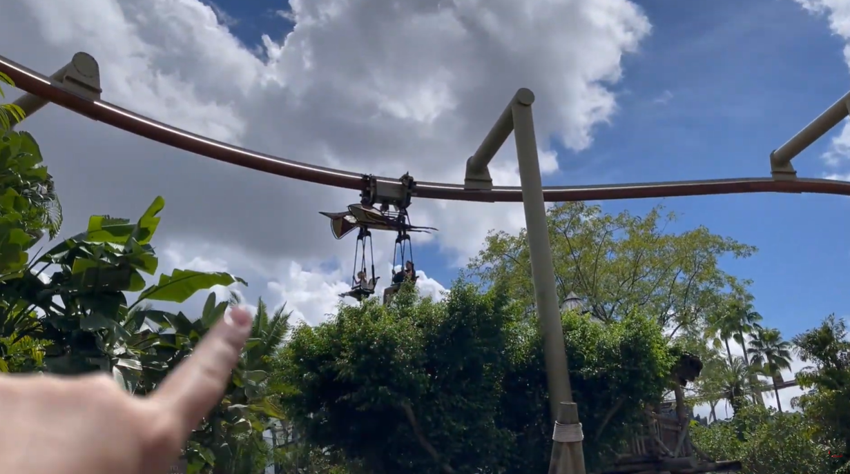 Aqui mora a minha maior frustração na Universal! Existe uma atração chamada Pteranodon Flyers, que é um voo suave por cima de toda a área. A vista lá de cima é de outro mundo! Mas tem um detalhe que me deixa inconformada: você SÓ PODE IR se estiver acompanhando uma criança entre 91cm e 1,42m.